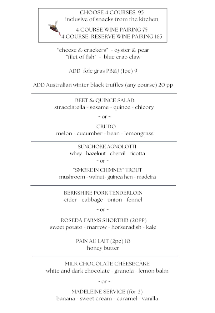 Menu price does not include tax and gratuity. In order to ensure that our team earns a competitive wage, a 20% service fee will be added to the final bill.
