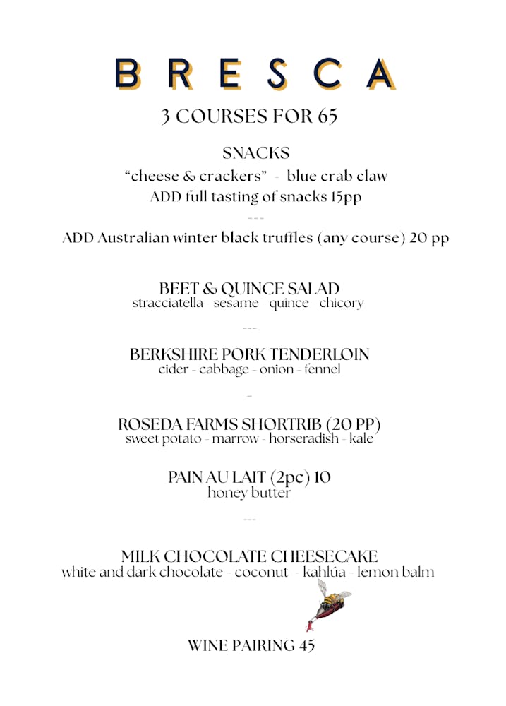 Bresca has been awarded Wine Spectator's Award of Excellence!
