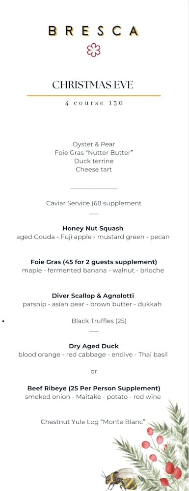 Our current menu may not feature accommodations for some allergies and dietary restrictions. Please inquire in advance at info@brescadc.com with any questions regarding the menu.