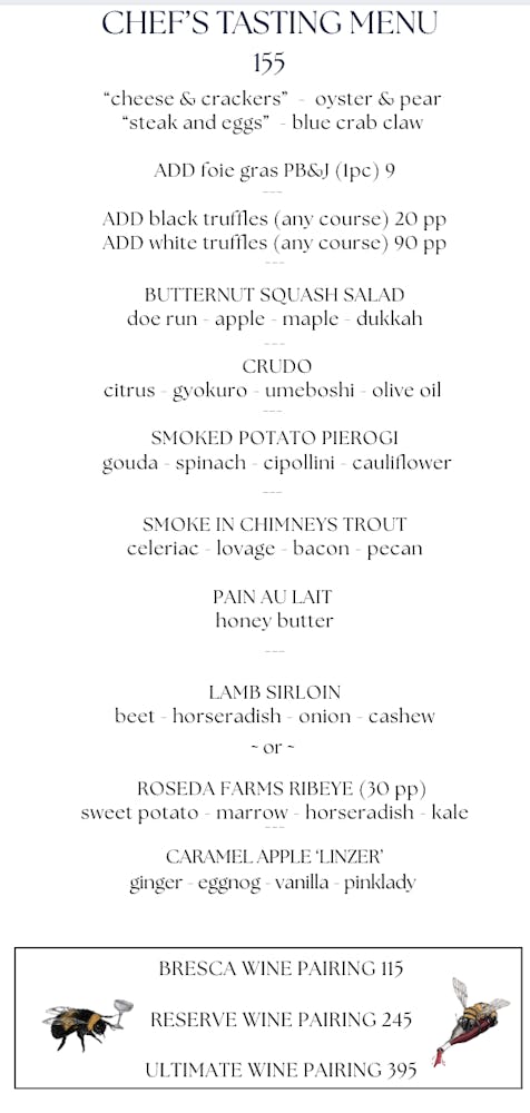 Our current menu may not feature accommodations for some allergies and dietary restrictions. Please inquire in advance at info@brescadc.com with any questions regarding the menu.