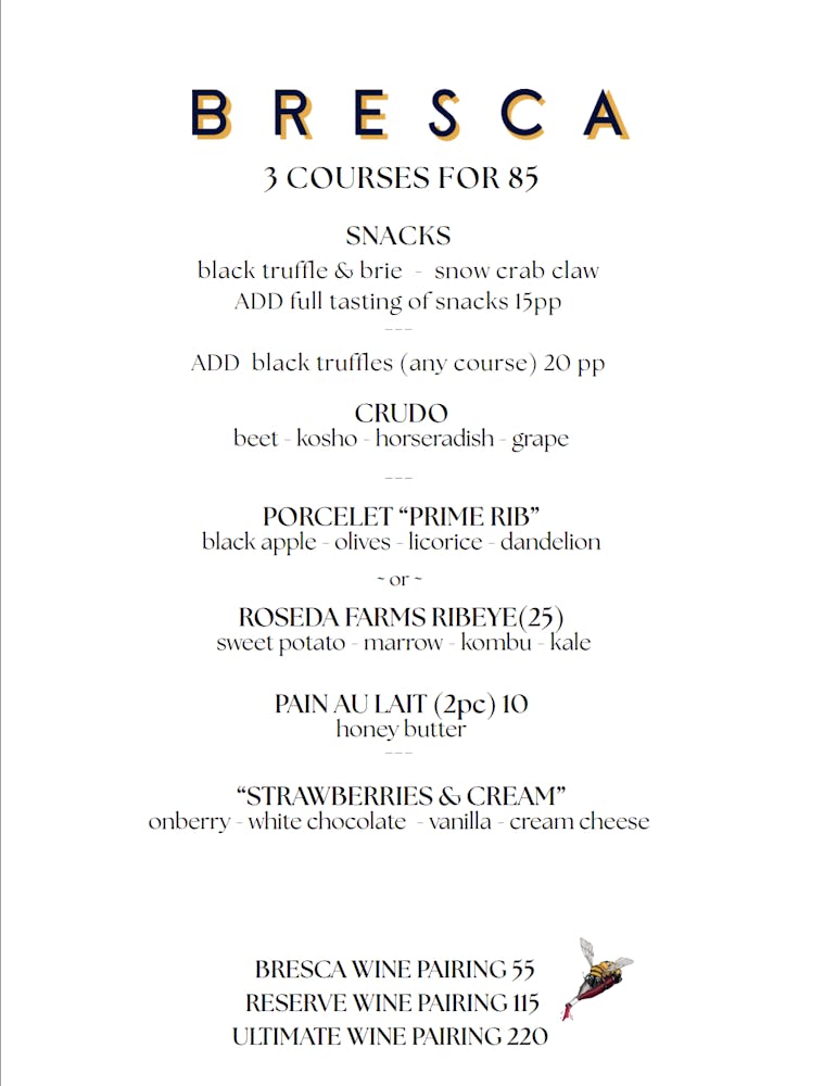 Bresca has been awarded Wine Spectator's Award of Excellence!