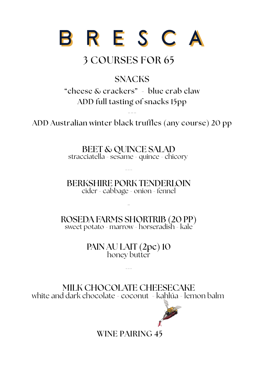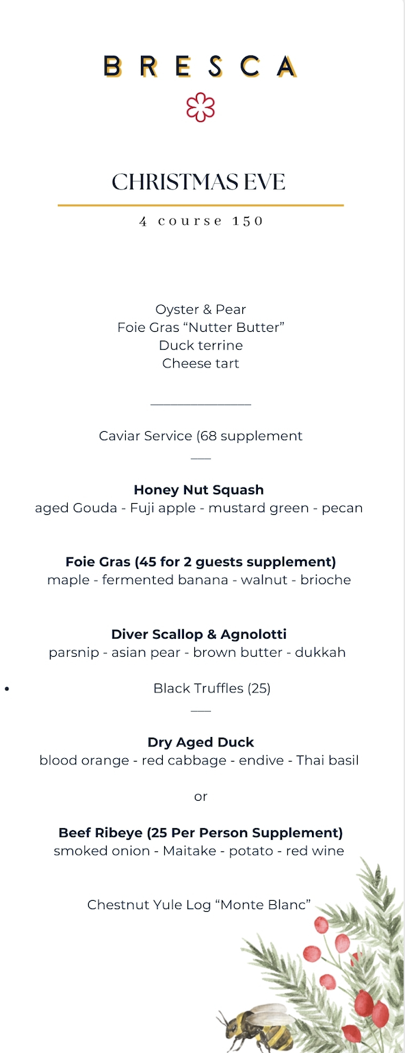 Our current menu may not feature accommodations for some allergies and dietary restrictions. Please inquire in advance at info@brescadc.com with any questions regarding the menu.