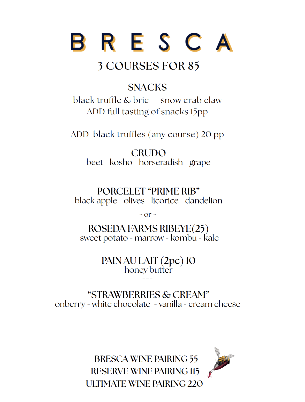 Bresca has been awarded Wine Spectator's Award of Excellence!